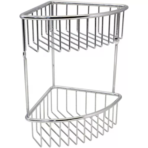 Top quality stainless double corner basket. T-welded. 5 year rust guarantee. Chrome cover plates. Box packed. 18x18x28cm.