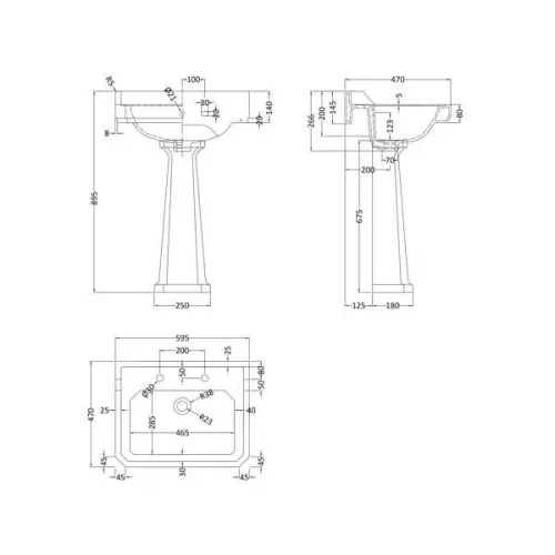 APS5858 Richmond 600mm 2 TH Basin & Pedestal White