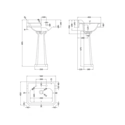 APS5862 Richmond 560mm 2 TH Basin & Pedestal White