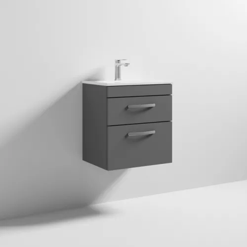 APS51433 Deco Compact Wall Hung 1 Door Vanity Basin Unit & Ceramic Basin, 400mm - Satin Grey Grey