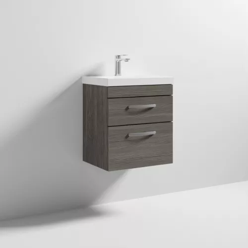 APS51430 Vault Wall Hung Single Door Compact Vanity Unit with Ceramic Basin 400mm - Anthracite Woodgrain Antharcite
