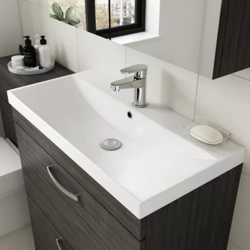 APS51430 Vault Wall Hung Single Door Compact Vanity Unit with Ceramic Basin 400mm - Anthracite Woodgrain Antharcite