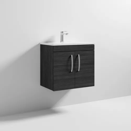 APS51430 Vault Wall Hung Single Door Compact Vanity Unit with Ceramic Basin 400mm - Anthracite Woodgrain Antharcite
