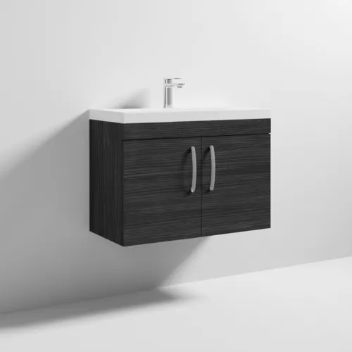 APS51430 Vault Wall Hung Single Door Compact Vanity Unit with Ceramic Basin 400mm - Anthracite Woodgrain Antharcite