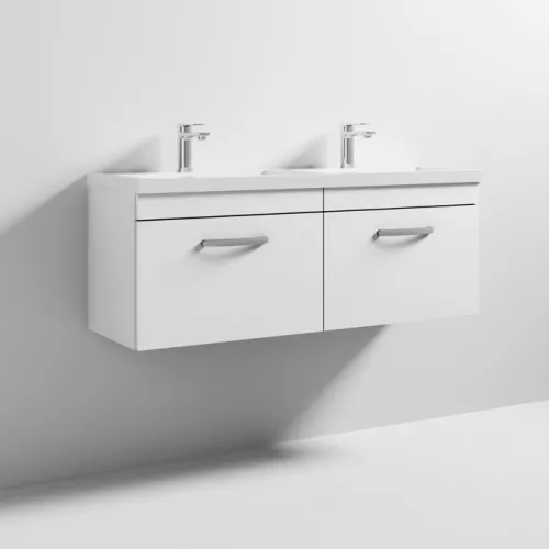 APS6668 1200 WH 2-Drawer Vanity & Double Basin Gloss White