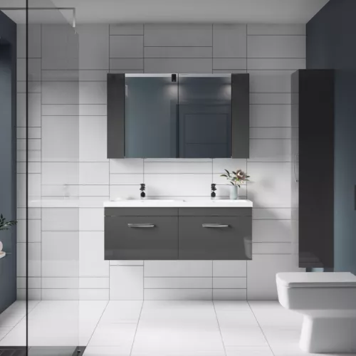 APS6670 1200 WH 2-Drawer Vanity & Double Basin Gloss Grey