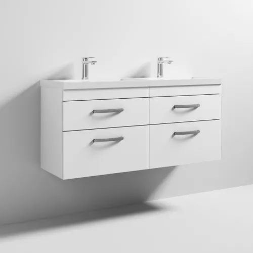 APS6677 1200 WH 4-Drawer Vanity & Double Basin Gloss White