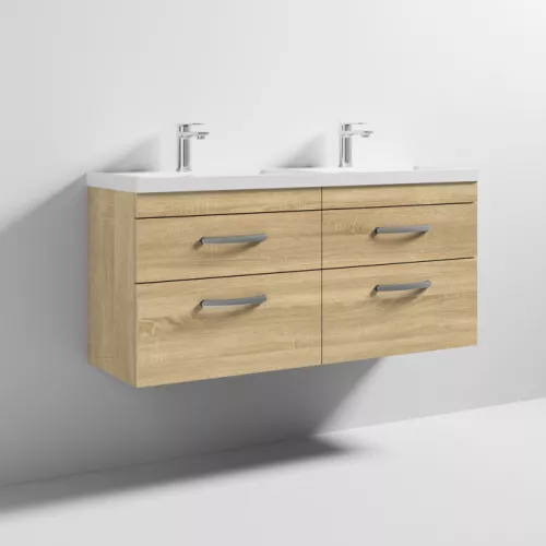 APS6681 1200 WH 4-Drawer Vanity & Double Basin Natural Oak