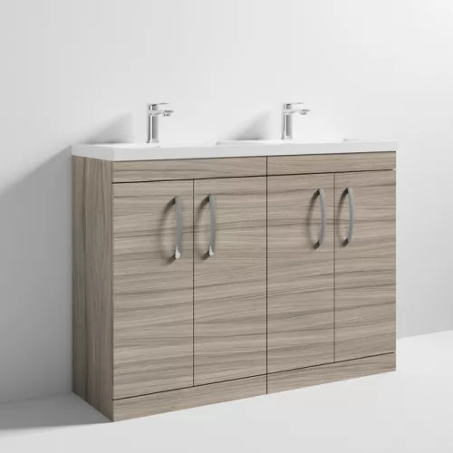 APS6776 1200 FS 4-Door Vanity & Double Basin Driftwood