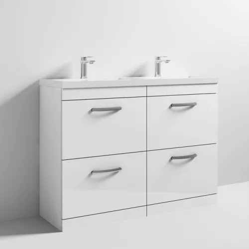 APS6861 1200 FS 4-Drawer Vanity & Double Basin Gloss White