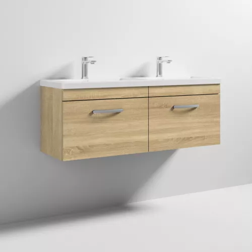APS6883 1200 WH 2-Drawer Vanity & Double Basin Natural Oak