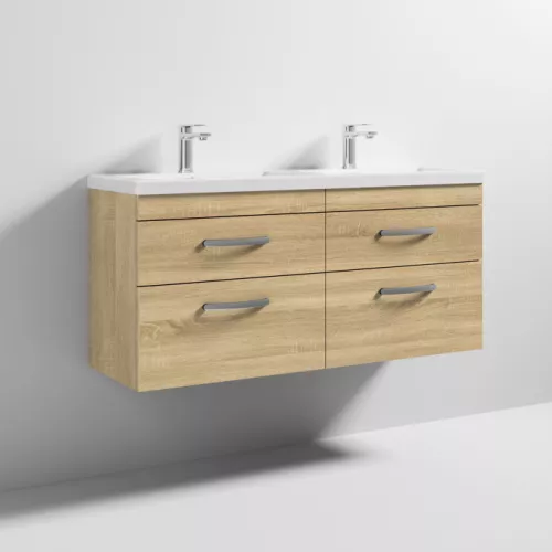APS6889 1200 WH 4-Drawer Vanity & Double Basin Natural Oak