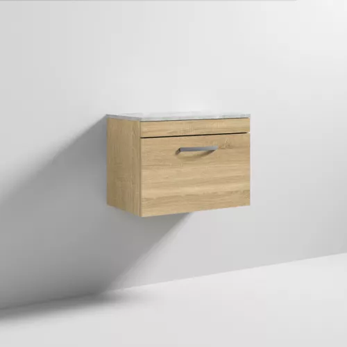 APS6913 600 WH Single Drawer Vanity & Worktop Natural Oak
