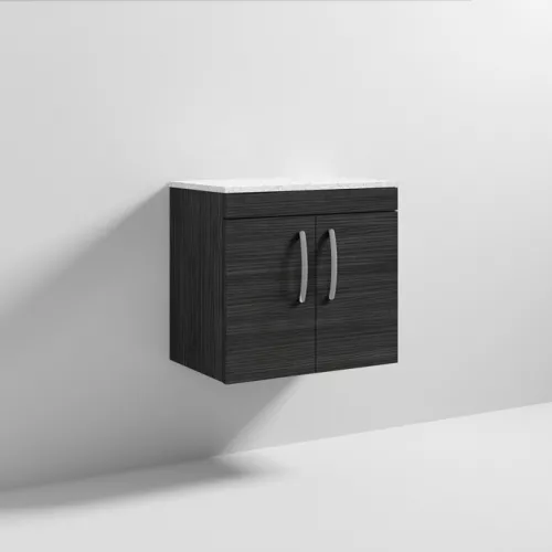 APS51430 Vault Wall Hung Single Door Compact Vanity Unit with Ceramic Basin 400mm - Anthracite Woodgrain Antharcite