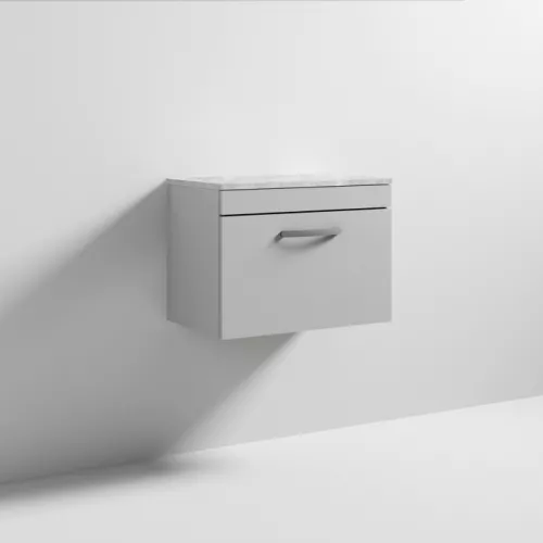 APS7036 600 WH Single Drawer Vanity & Worktop Gloss Grey Mist
