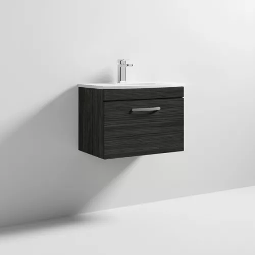 APS51430 Vault Wall Hung Single Door Compact Vanity Unit with Ceramic Basin 400mm - Anthracite Woodgrain Antharcite