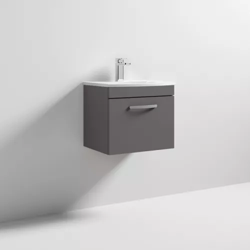 APS51433 Deco Compact Wall Hung 1 Door Vanity Basin Unit & Ceramic Basin, 400mm - Satin Grey Grey