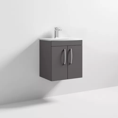 APS51433 Deco Compact Wall Hung 1 Door Vanity Basin Unit & Ceramic Basin, 400mm - Satin Grey Grey
