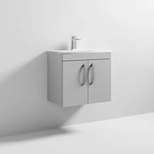 APS51433 Deco Compact Wall Hung 1 Door Vanity Basin Unit & Ceramic Basin, 400mm - Satin Grey Grey