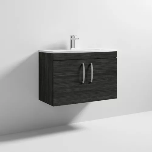 APS51430 Vault Wall Hung Single Door Compact Vanity Unit with Ceramic Basin 400mm - Anthracite Woodgrain Antharcite