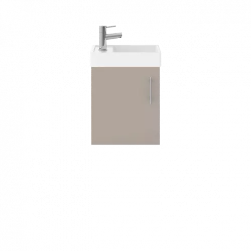 APS51432 Vault Wall Hung Single Door Compact Vanity Unit with Ceramic Basin 400mm - Gloss Grey Mist Grey