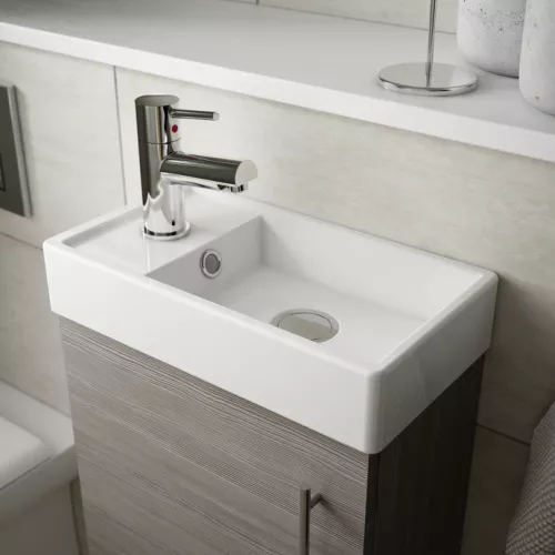 APS51430 Vault Wall Hung Single Door Compact Vanity Unit with Ceramic Basin 400mm - Anthracite Woodgrain Antharcite
