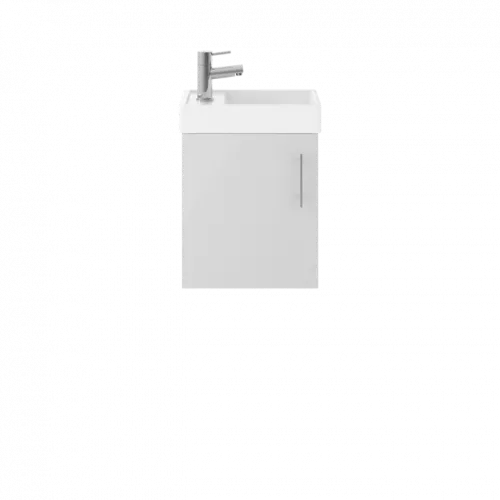 APS51432 Vault Wall Hung Single Door Compact Vanity Unit with Ceramic Basin 400mm - Gloss Grey Mist Grey