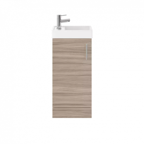 APS51429 Deco Compact Floor Standing 1 Door Vanity Basin Unit & Ceramic Basin, 400mm - Satin Grey Grey
