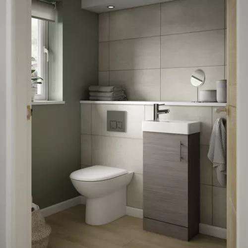 APS51430 Vault Wall Hung Single Door Compact Vanity Unit with Ceramic Basin 400mm - Anthracite Woodgrain Antharcite