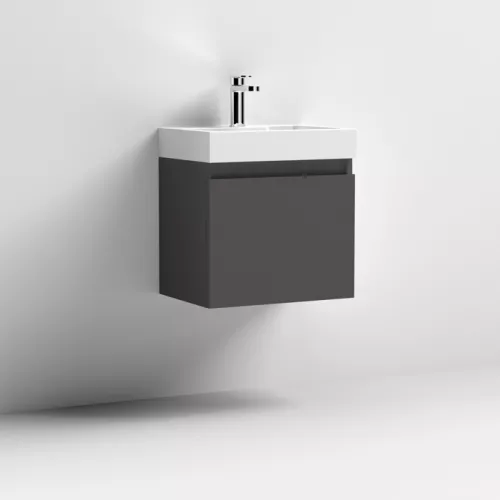 APS51433 Deco Compact Wall Hung 1 Door Vanity Basin Unit & Ceramic Basin, 400mm - Satin Grey Grey