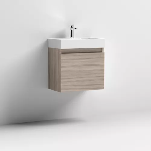APS51430 Vault Wall Hung Single Door Compact Vanity Unit with Ceramic Basin 400mm - Anthracite Woodgrain Antharcite