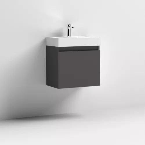 APS51433 Deco Compact Wall Hung 1 Door Vanity Basin Unit & Ceramic Basin, 400mm - Satin Grey Grey