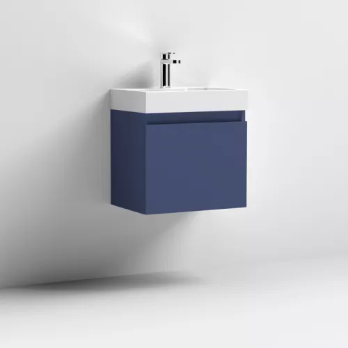 APS51434 Deco Compact Wall Hung 1 Door Vanity Basin Unit & Ceramic Basin, 400mm - Satin Blue Blue