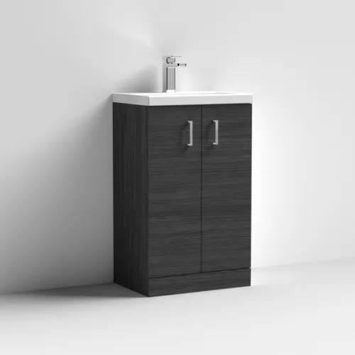APS51430 Vault Wall Hung Single Door Compact Vanity Unit with Ceramic Basin 400mm - Anthracite Woodgrain Antharcite