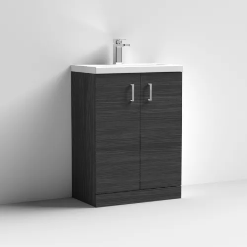 APS51430 Vault Wall Hung Single Door Compact Vanity Unit with Ceramic Basin 400mm - Anthracite Woodgrain Antharcite