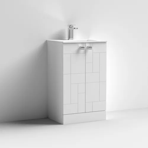 APS51425 Deco Compact Floor Standing 1 Door Vanity Basin Unit & Ceramic Basin, 400mm White