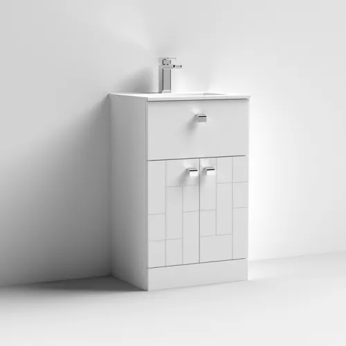 APS7487 500 F/S 2-Door/Drawer Unit & Basin 2 Satin White