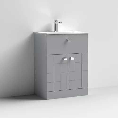 APS7499 600 F/S 2-Door/Drawer Unit & Basin 2 Satin Grey