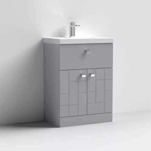 APS7500 600 F/S 2-Door/Drawer Unit & Basin 3 Satin Grey