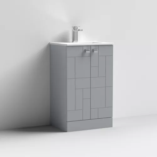 APS51429 Deco Compact Floor Standing 1 Door Vanity Basin Unit & Ceramic Basin, 400mm - Satin Grey Grey