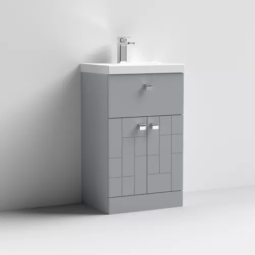 APS7512 500 F/S 2-Door/Drawer Unit & Basin 3 Satin Grey
