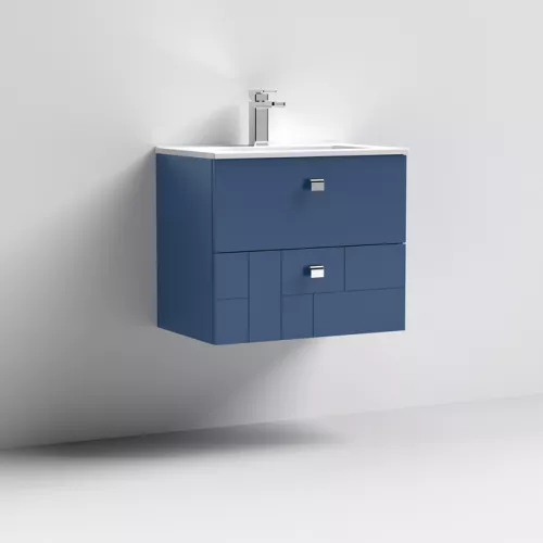 APS51434 Deco Compact Wall Hung 1 Door Vanity Basin Unit & Ceramic Basin, 400mm - Satin Blue Blue