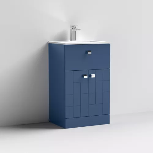 APS51426 Deco Compact Floor Standing 1 Door Vanity Basin Unit & Ceramic Basin, 400mm - Satin Blue Blue
