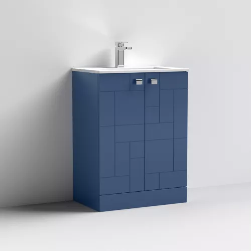 APS51426 Deco Compact Floor Standing 1 Door Vanity Basin Unit & Ceramic Basin, 400mm - Satin Blue Blue