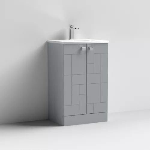 APS51429 Deco Compact Floor Standing 1 Door Vanity Basin Unit & Ceramic Basin, 400mm - Satin Grey Grey