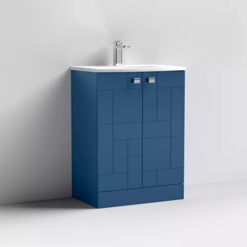 APS51426 Deco Compact Floor Standing 1 Door Vanity Basin Unit & Ceramic Basin, 400mm - Satin Blue Blue