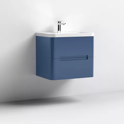 APS51434 Deco Compact Wall Hung 1 Door Vanity Basin Unit & Ceramic Basin, 400mm - Satin Blue Blue
