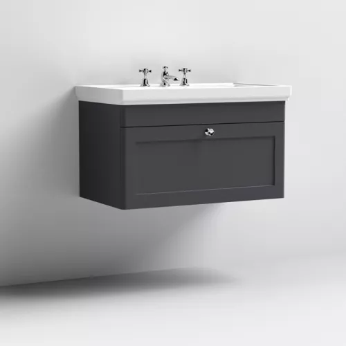 APS13089 800mm Wall Hung 1-Drawer Unit & Basin 3TH Satin Black