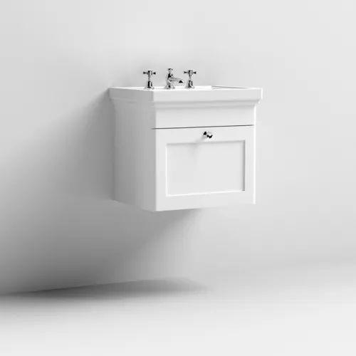 APS13091 500mm Wall Hung 1-Drawer Unit & Basin 3TH Satin Black