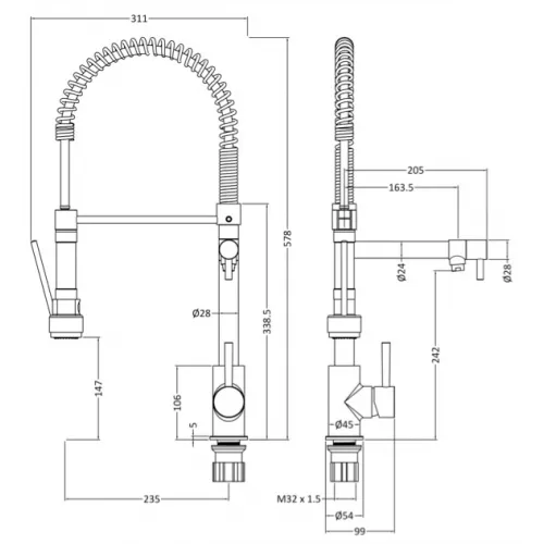 APS12207 Tall Side Kitchen Tap Rinser & Pan Fil Chrome